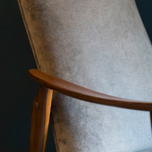 Poltrona Scandinava Anni ’50 in Teak – Design Vintage con Rivestimento Grigio