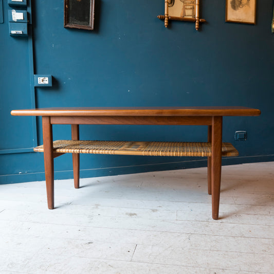 Coffee Table, teak e rattan, scandinavo anni ’60
