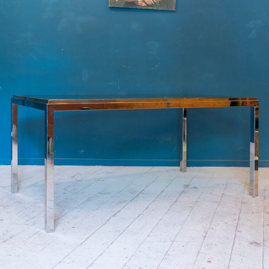 Tavolo Romeo Rega in Acciaio Cromato e Vetro Fumé – Design Italiano Anni '70