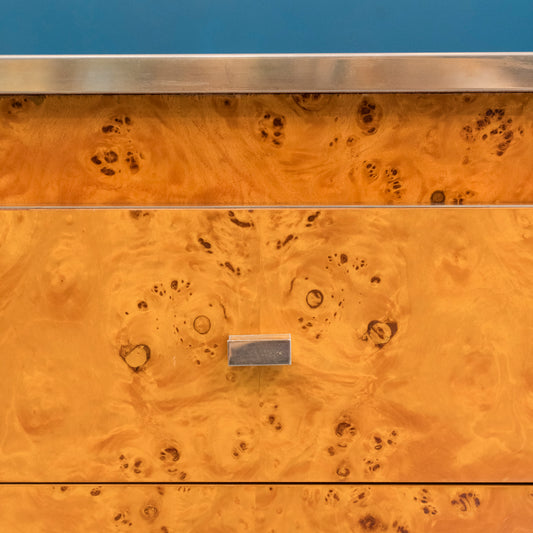 Sideboard Vintage Anni ’70 in Radica e Acciaio – Stile Willy Rizzo